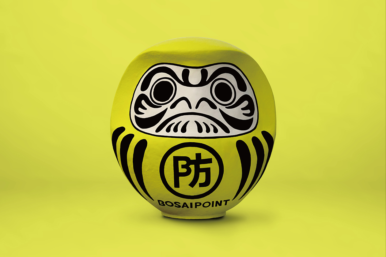 Branding project for "BOSAI POINT", a new type of disaster prevention service that allows users to donate surplus points. We were in charge of designing the logo, UI, key visuals, and merchandise. Variously developed around the symbolic fire prevention mark, with a tone reminiscent of a Hikeshi that disaster prevention organization in Japan during the Edo period.