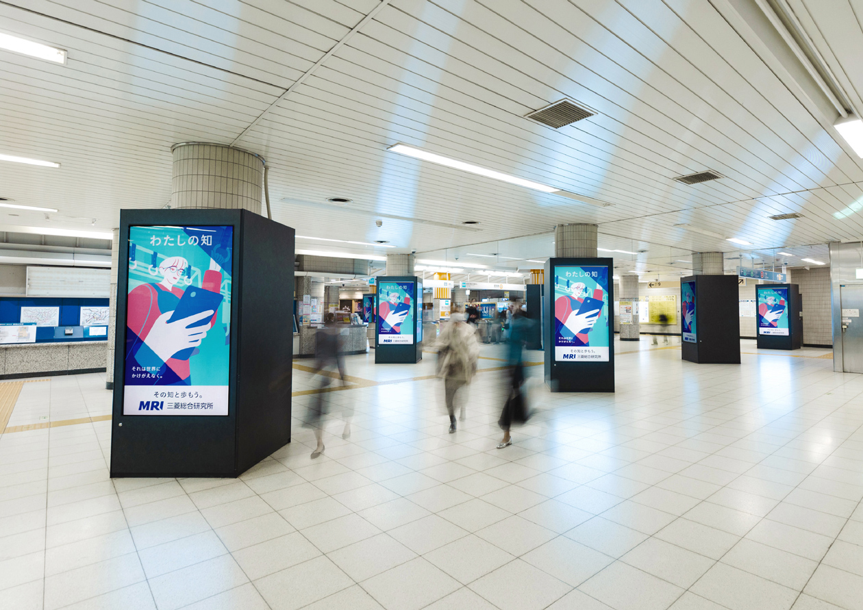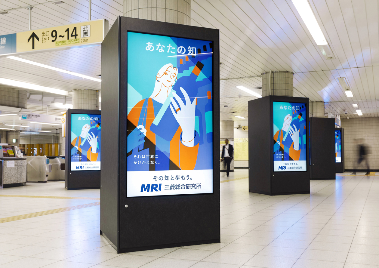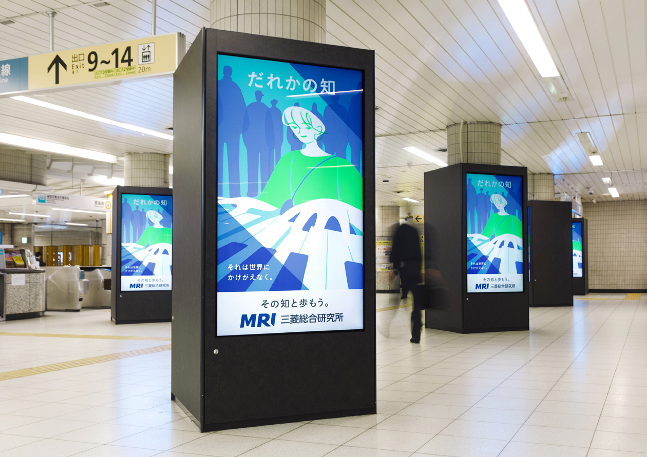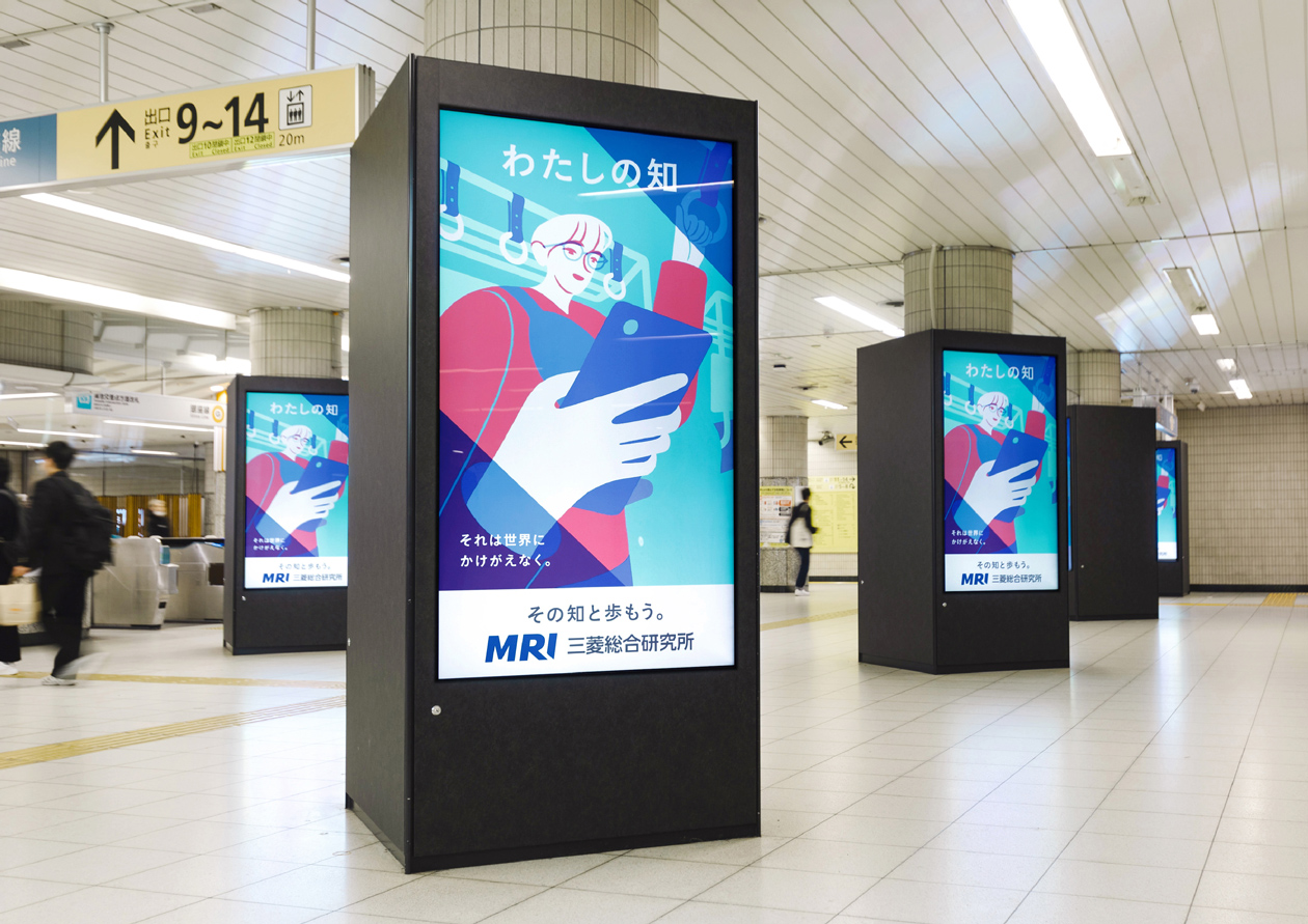 三菱総合研究所(MRI)のブランディングプロジェクト。ブランディングの一環としOOH広告のアートディレクション、デザインを担当。日々に息づくみんなの知を、何気ないシーンのイラストで表現しています。約1ヶ月にわたり、JRと東京メトロの主要駅にて掲出されました。