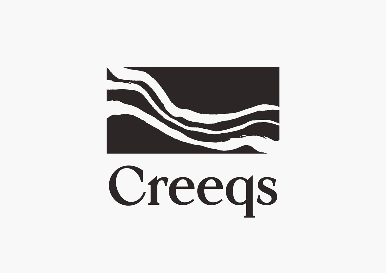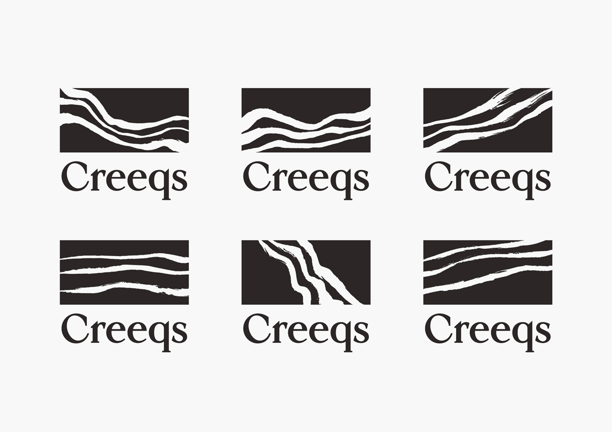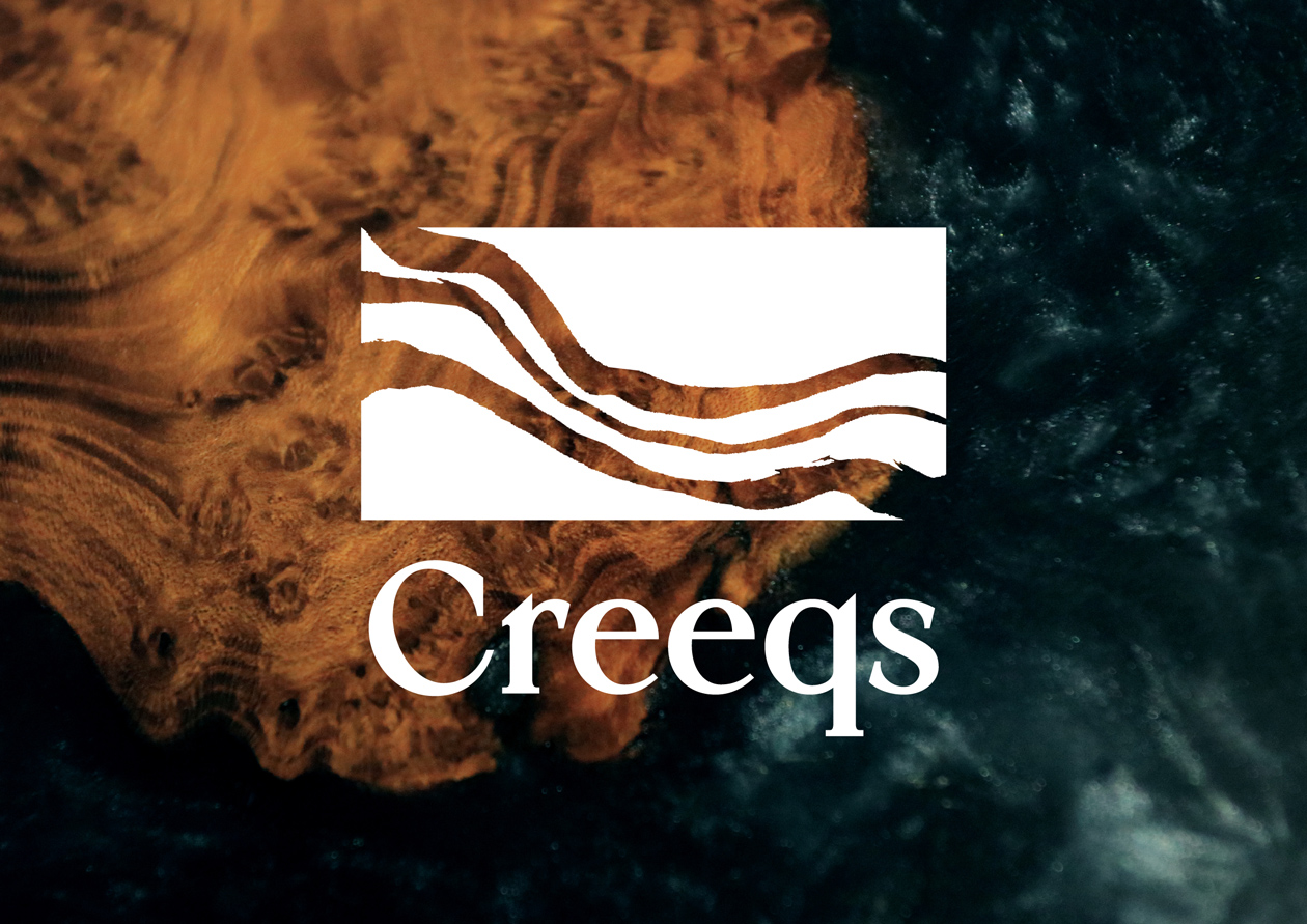 アメリカを拠点とする日本人家具デザイナーによる、リバーテーブルブランド「Creeqs」のロゴをデザインしました。リバーテーブルとは、木材とレジンを用いて川の流れを表現したテーブルのこと。黒や濃色の表現を得意とするCreeqsにちなみ、墨で描いたリバーテーブル自体をマークとしました。日本的で繊細でありながら、ダイナミックさも感じさせるロゴマークを目指しています。