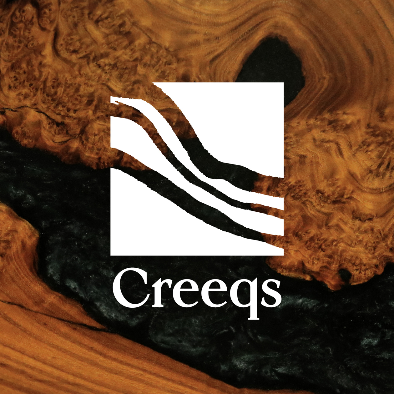 Logo design for Creeqs, a river table brand by a Japanese furniture designer based in the United States. A river table is a table that uses a wood and resin to represent a flowing river. In honor of Creeqs, which specializes in black and dark-colored flows, the mark is the river table itself, drawn in black ink. We aimed to create a logo that is Japanese and delicate, yet somehow dynamic.