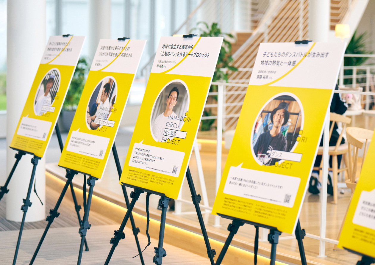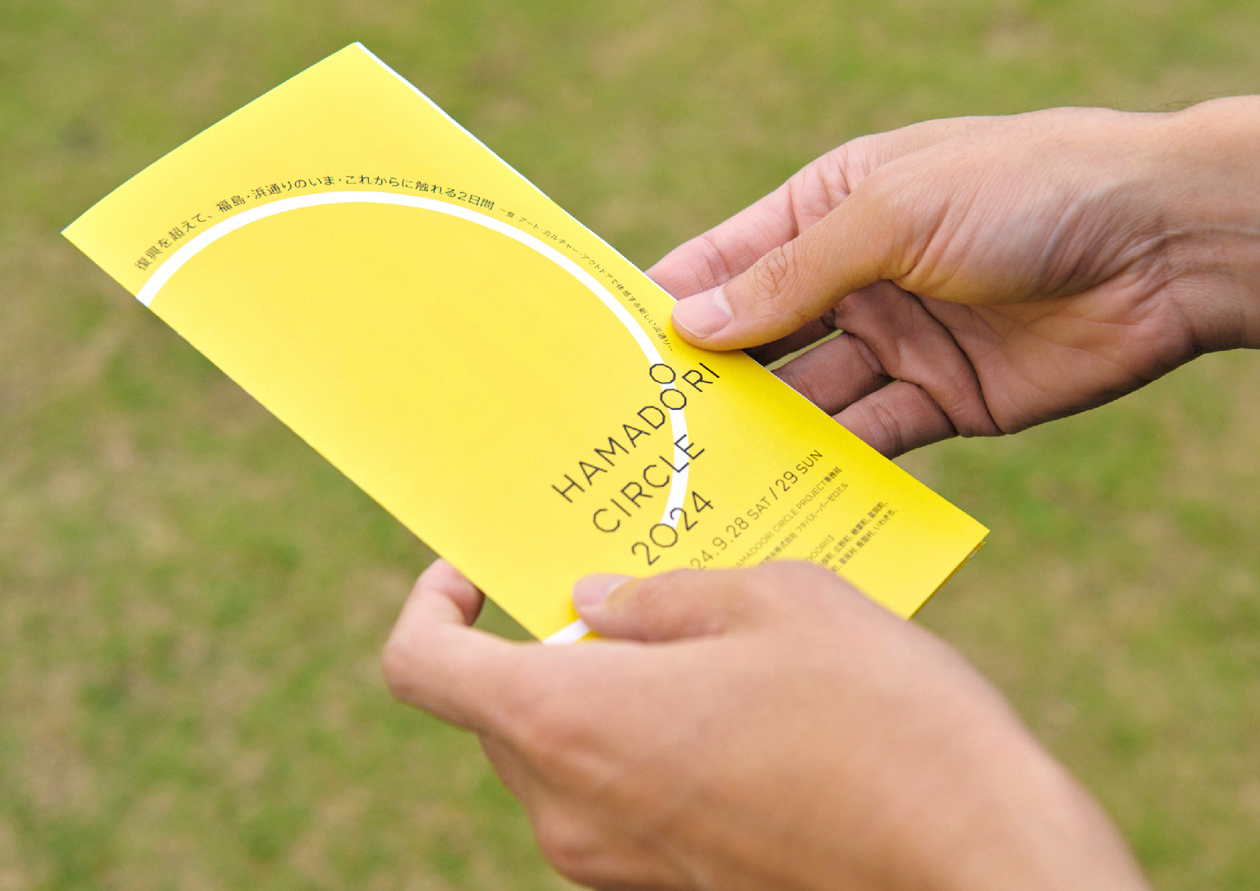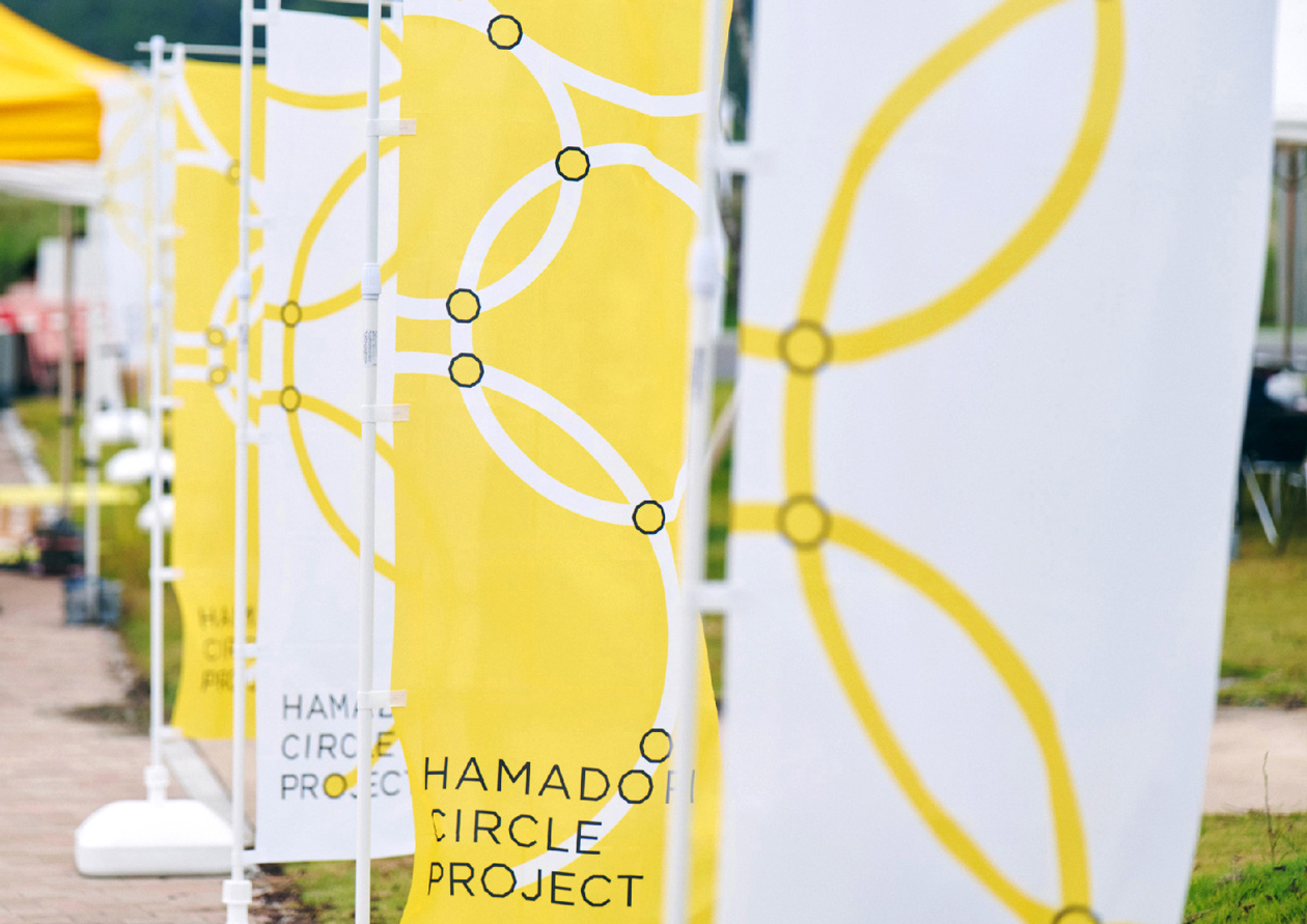 Thirteen years after the Great East Japan Earthquake, various activities and landscapes have begun to spread in the Hamadoori area of Fukushima Prefecture. We were in charge of art direction and design for the “HAMADOORI CIRCLE PROJECT” and the kick-off event “HAMADOORI CIRCLE 2024,” which aimed to discover and experience its new attractions, connect with the community and people. The logo represents the yellow parasols, the key element of the project, which are connected to form a large circle. With the logo as the axis, we developed and deployed a design format that was easy to operate for those involved in the event.