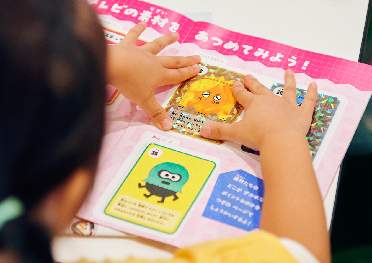 Earth Hacks & Co., Ltd. held a workshop titled “Found Decabo!” based on its “Decabo score”, and we were responsible for the art direction and design. The workshop involved taking apart a Panasonic TV to learn about materials and recycling systems, collecting character cards featuring “Decabo parts” found in the TV, and completing a “Found It! Notebook.” The workshop was held on August 2nd and 3rd at the “Shiodome Summer School 2025” and was a huge success, with both days fully booked.