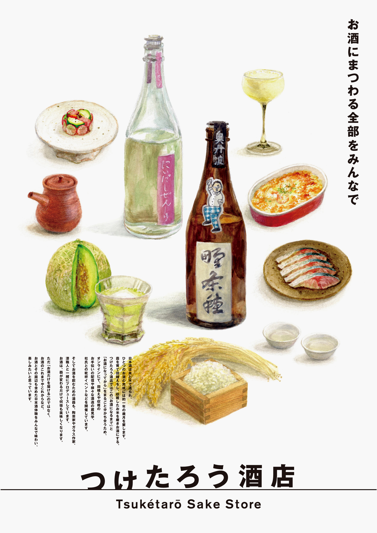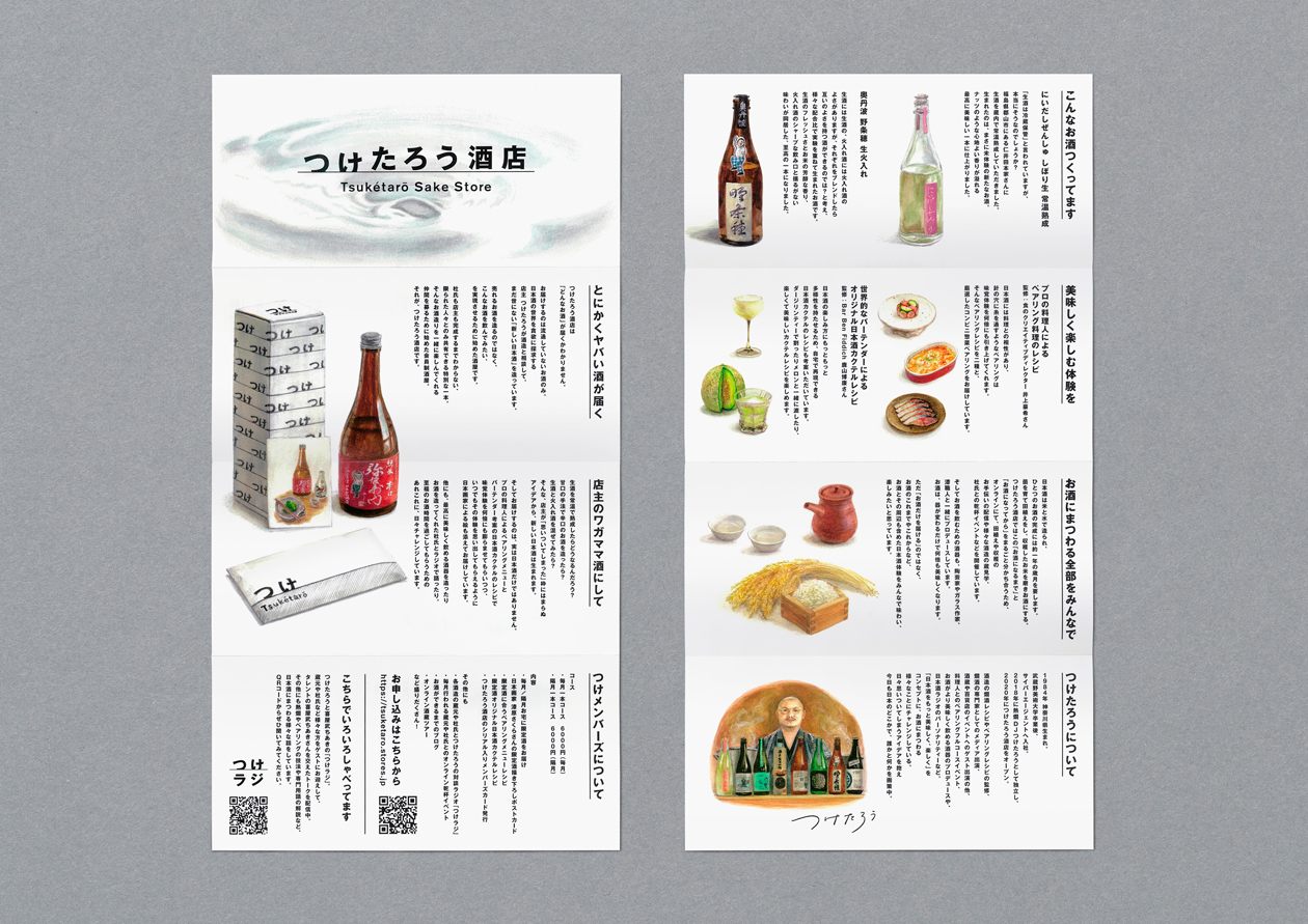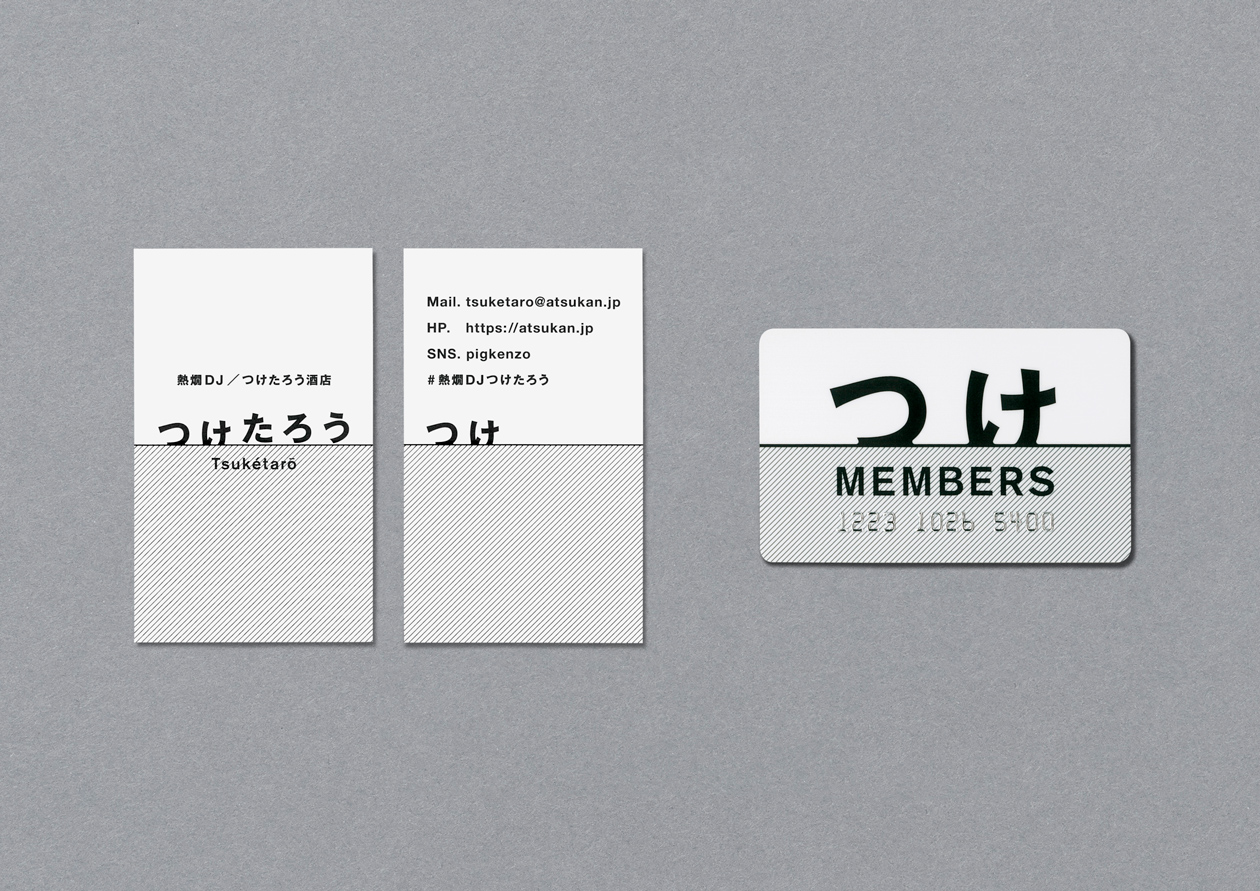 「日本酒をもっと美味しく、楽しく」をビジョンとする「熱燗DJ つけたろう」及び「つけたろう酒店」のブランディングプロジェクト。 “つける”という行為をシンプルにシンボル化したロゴや、名刺などのアプリケーション、パッケージ、リーフレットなど幅広く手掛けています。シンプルながらもユニークさを持ったワクワクする世界観を作っています。