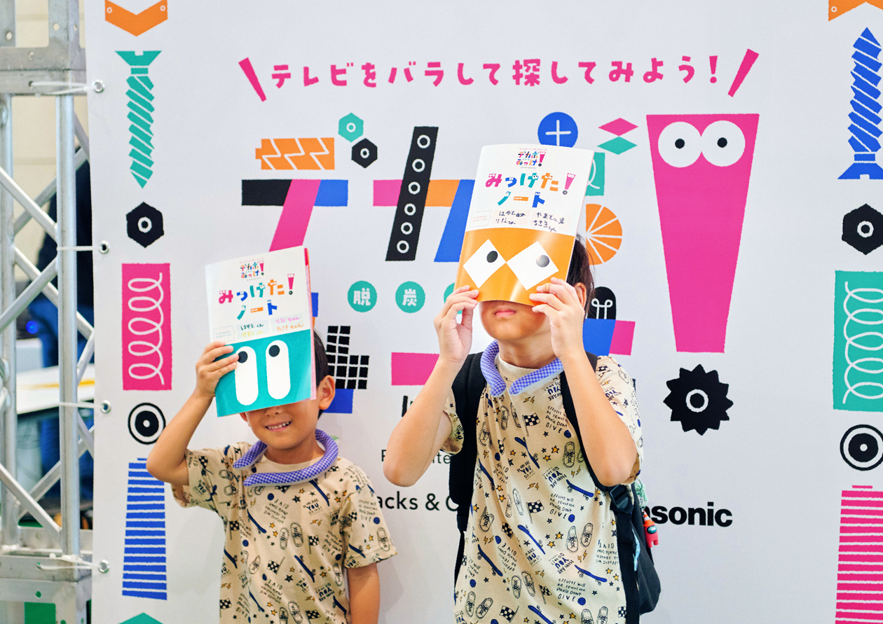 Earth Hacks & Co., Ltd. held a workshop titled “Found Decabo!” based on its “Decabo score”, and we were responsible for the art direction and design. The workshop involved taking apart a Panasonic TV to learn about materials and recycling systems, collecting character cards featuring “Decabo parts” found in the TV, and completing a “Found It! Notebook.” The workshop was held on August 2nd and 3rd at the “Shiodome Summer School 2025” and was a huge success, with both days fully booked.